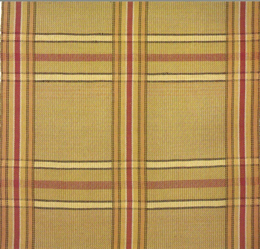 Brunswick #70 - Red, tan, salmon, stripes on sage, cocoa background.