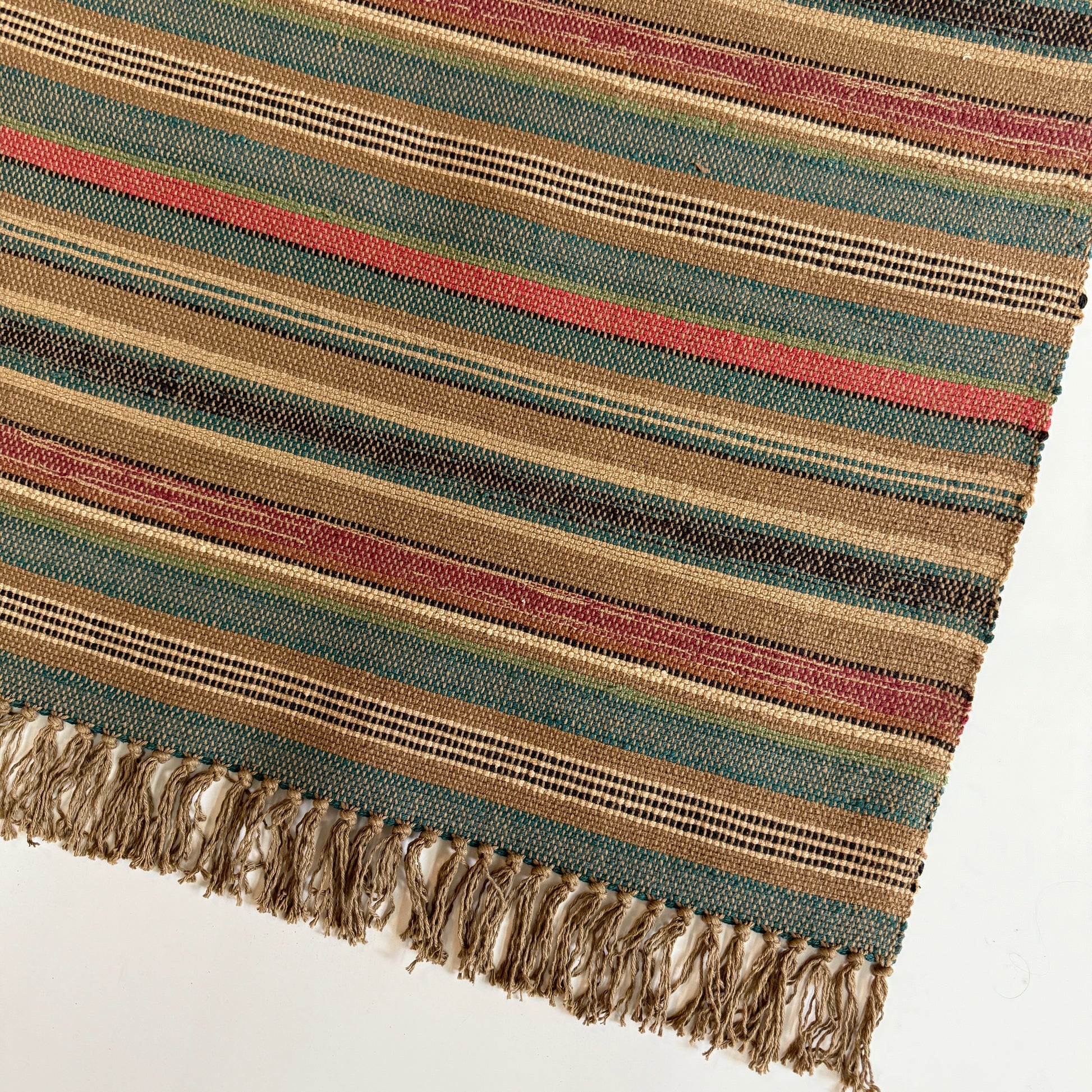 All rugs purchased online are hand finished with fringe on two ends. Custom rugs can be ordered with fringed or bound ends. Contact us for details regarding size options, pricing, and lead times.